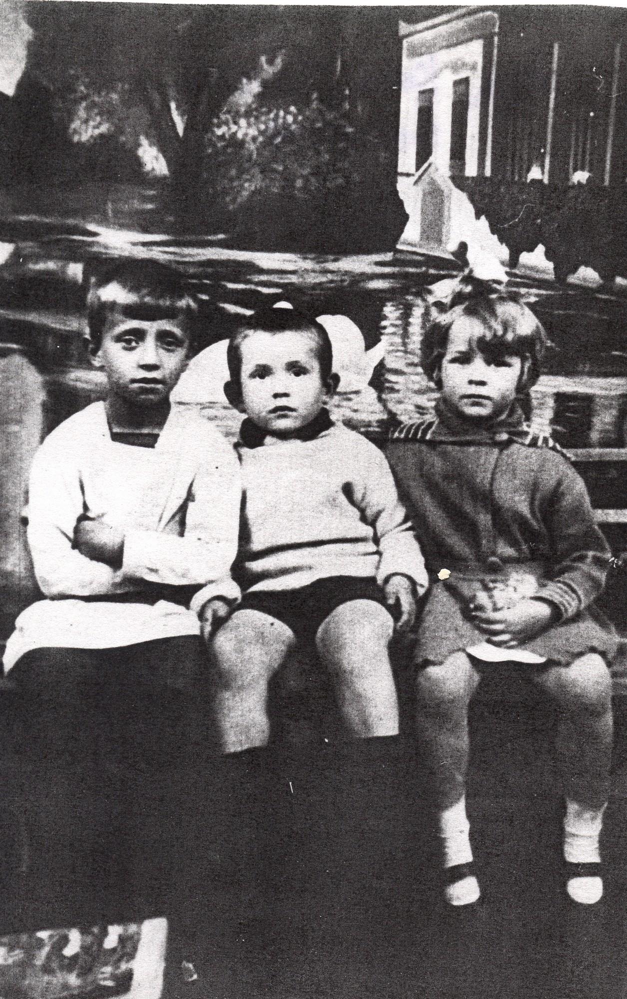 Дети С.А.Есенина. Слева направо: Юрий Изрянов, Костя и Таня Есенины(1922г.)